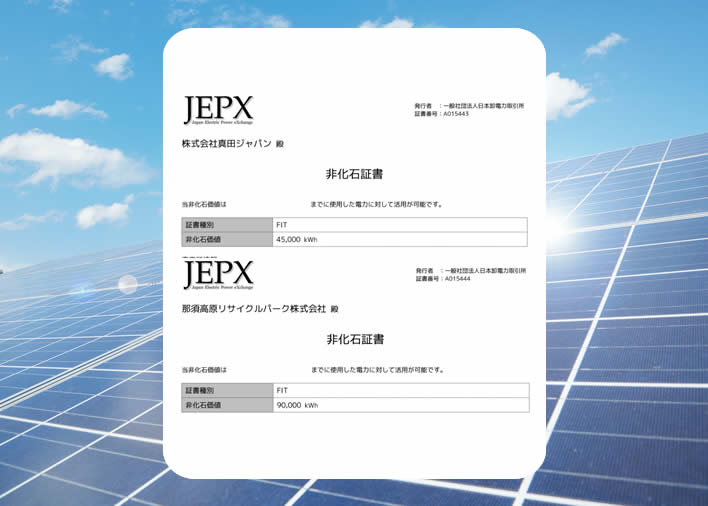 脱炭素社会の実現に向けた取組の一環で、トラッキング付きFIT非化石証書を購入し、電力使用に伴うCO2排出量を実質ゼロ化しております。